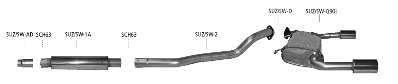Endschalldämpfer mit Einfach-Endrohr 2 x Ø 90 mm Swift Sport 1600