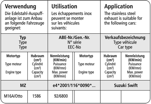 Ersatzrohr für Vorschalldämpfer (Dieser Artikel ist nicht für die Nutzung im öffentlichen Straßenverkehr zulässig Einsatz nur für Rennsportzwecke!) Swift Sport 1600
