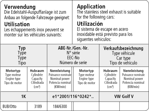 Eine Verwendung des Endschalldämpfers alleine ohne Vorschalldämpfer ist nicht möglich!