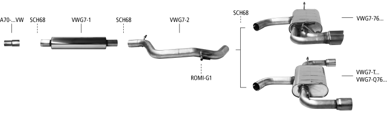 Endschalldämpfer mit Einfach-Endrohr LH + RH, 1 x Ø 85 mm (im RACE Look)
