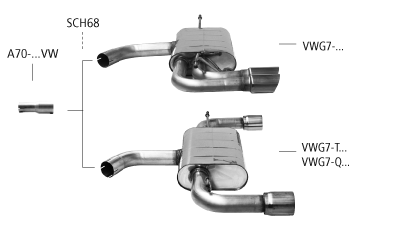 Endschalldämpfer mit Einfach-Endrohr LH + RH, 1 x Ø 85 mm (im RACE Look)