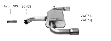 Endschalldämpfer mit Doppel-Endrohr LH + RH, 2 x Ø 76 mm mit Lippe, 20° schräg geschnitten