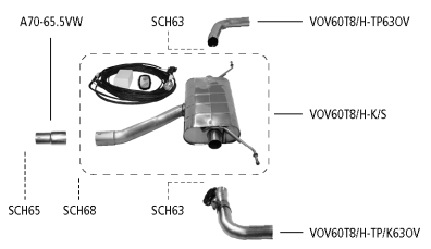 Die Endschalldämpfer können auch alleine verwendet werden. Zur Montage des Endschalldämpfers wird der Adapter A70-65.5VW benötigt.