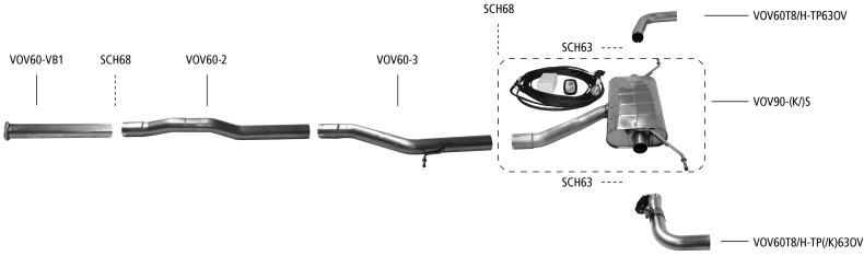 Die Endschalldämpfer können auch alleine verwendet werden. Zur Montage des Endschalldämpfers wird der Adapter A70-65.5VW benötigt.