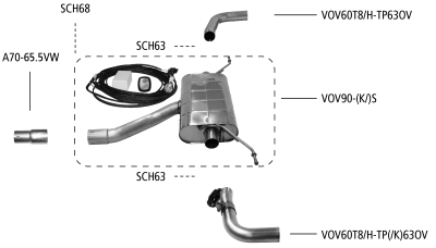 Die Endschalldämpfer können auch alleine verwendet werden. Zur Montage des Endschalldämpfers wird der Adapter A70-65.5VW benötigt.