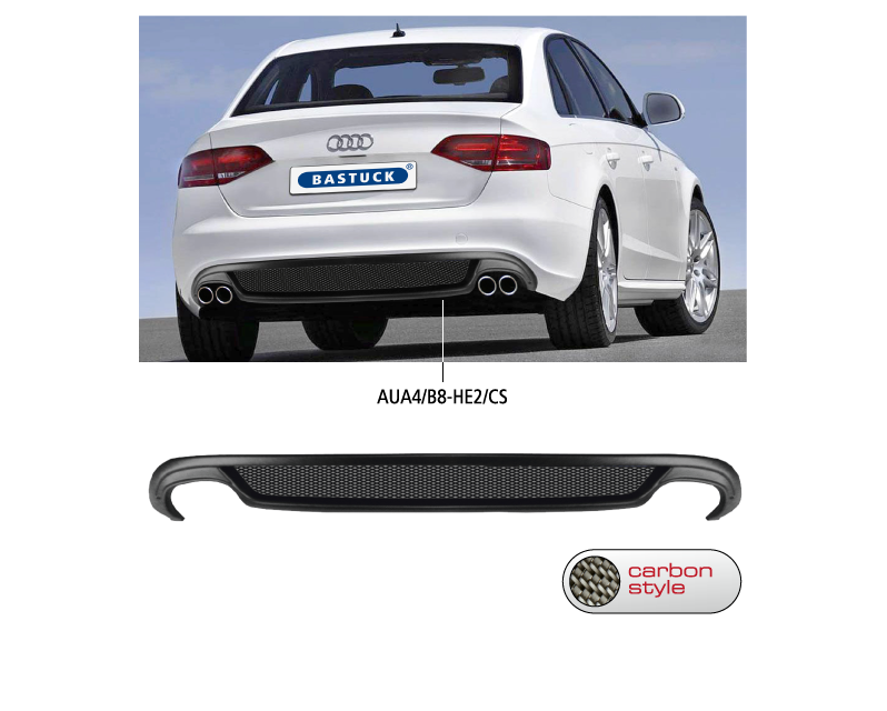 Heckschürzen-Einsatz, Carbon Style, mit Auschnitt für 2 x Doppel-Endrohr LH+RH Audi A4 B8 S-Line